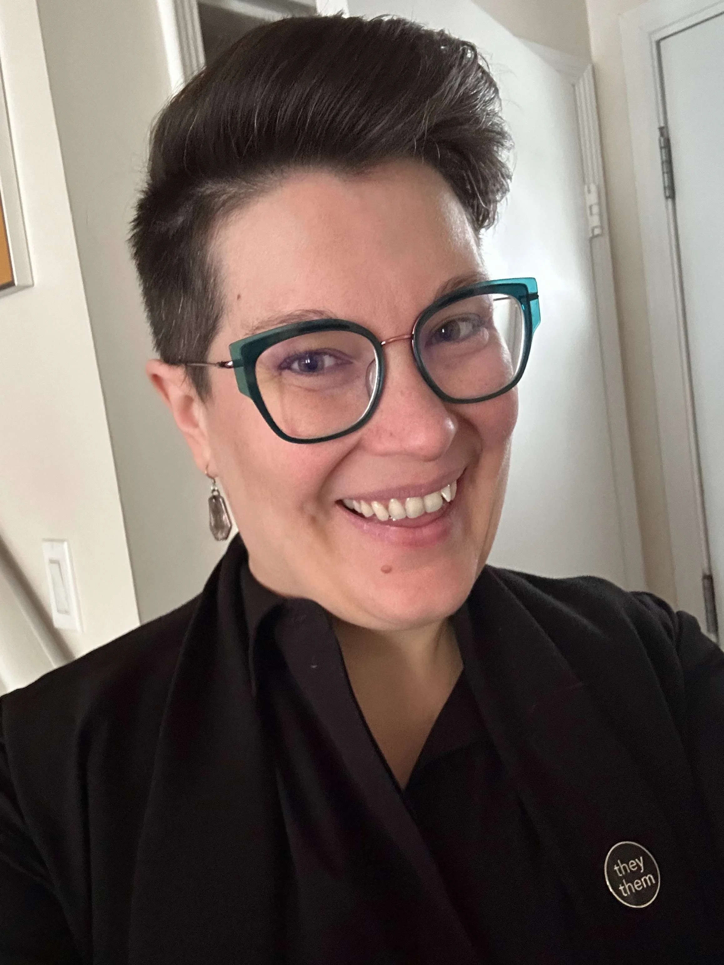Erin (they/them) is a conductor, vocalist, composer, keyboardist, and educator born and raised in Edmonton. They spend most of their time planning seasons and leading rehearsals for Accord Ensemble and Edmonton Vocal Minority; teaching piano, voice, and music theory students and coaching new teachers in their studio; and writing music for choir, organ, and piano. When they aren’t doing something music-related, you can usually find them playing video games, hyper-focusing on a new art or craft, writing stories, or serenading their cats, Sif and Dale, with their partner, Matthew.